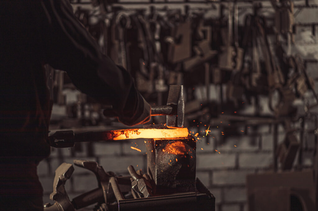 ロートアイアンは基本として、鉄を熱して柔らかくし、それをハンマーで叩いたり曲げたりして造ります。